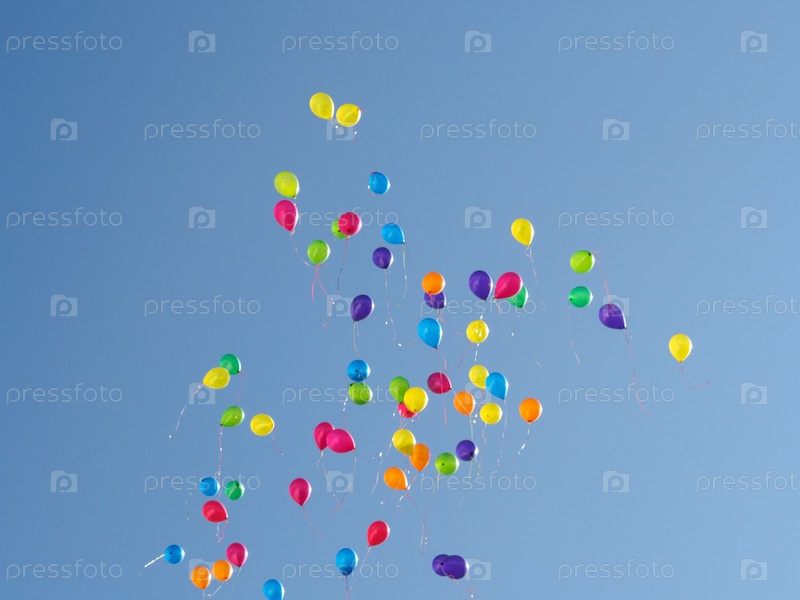 Разноцветные воздушные шарики в небе
