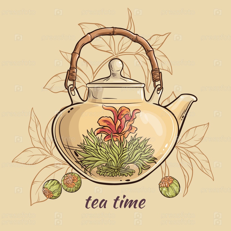 Векторные иллюстрации с цветочным чаем в чайнике