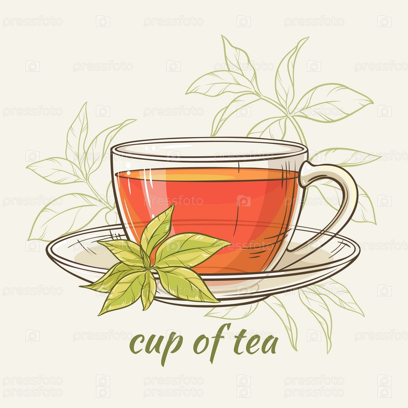 Иллюстрации с чашкой чая на цветном фоне