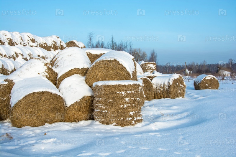 Стога сена, покрытые снегом