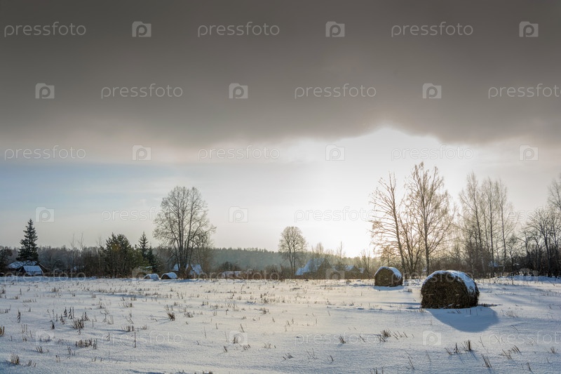Зимний пейзаж в лучах заходящего солнца