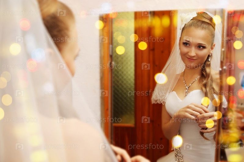 Невеста смотрит в зеркало