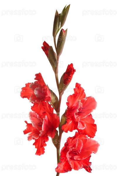 Красный гладиолус разновидности серебряный мираж на белом фоне