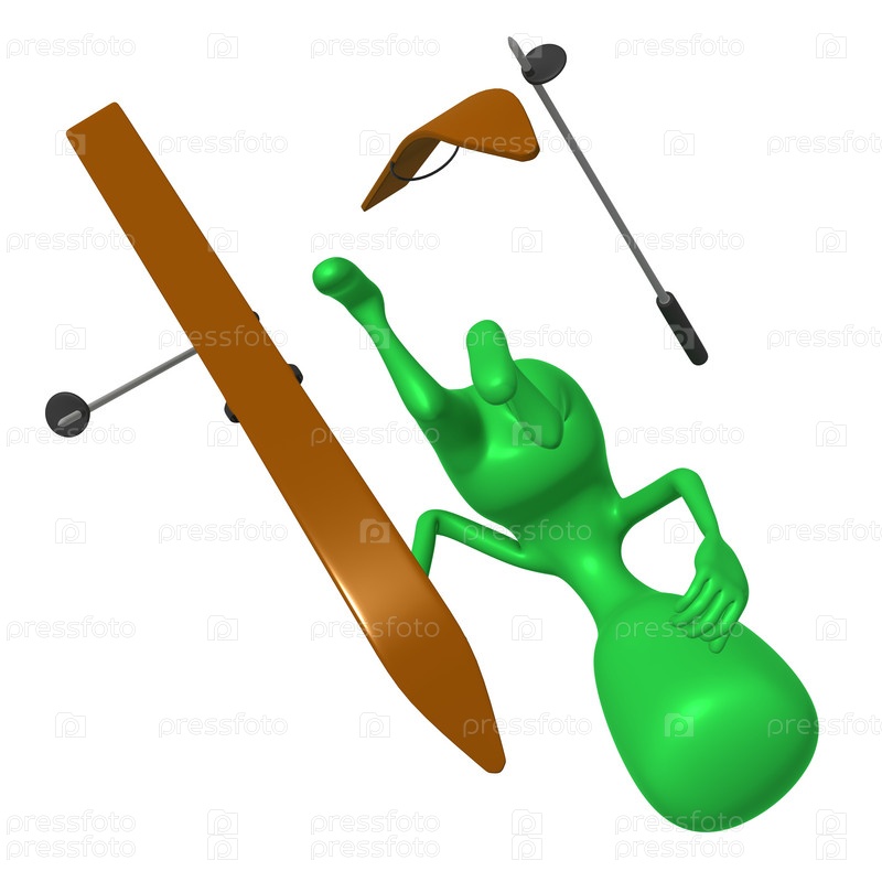 Зеленая кукла падает на лыжах
