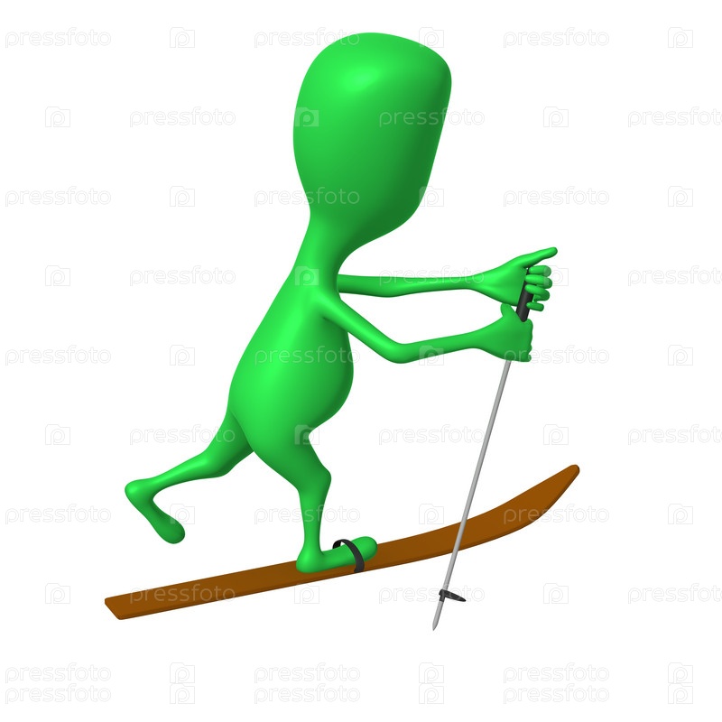 Зеленая кукла на одной лыже