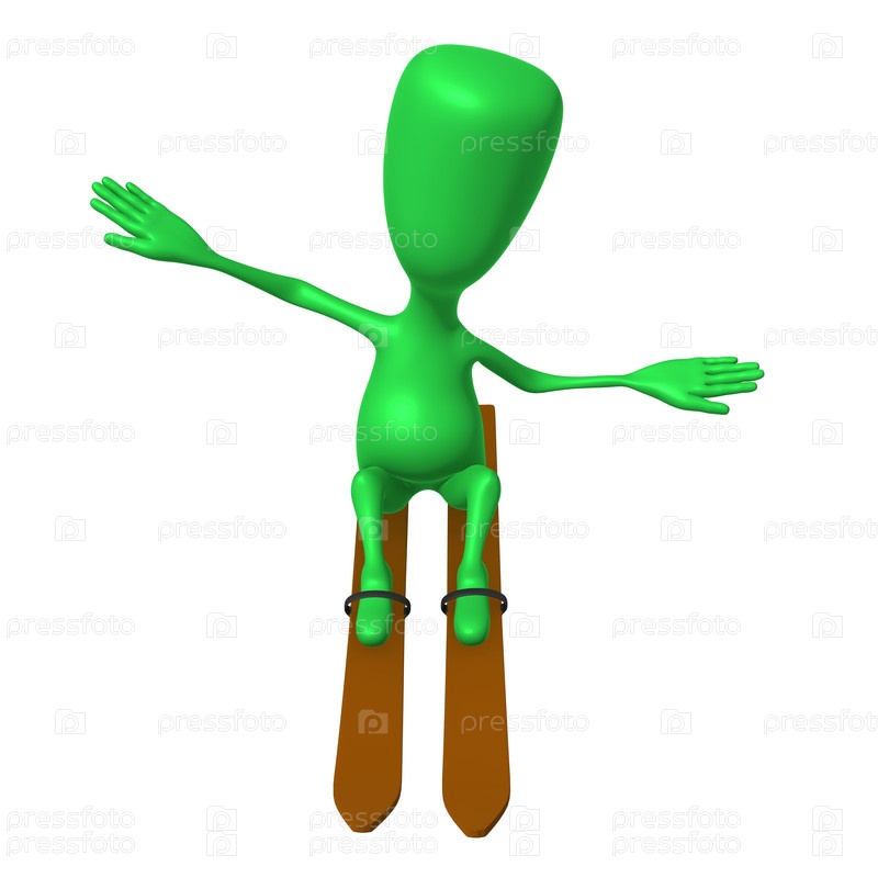 Зеленая кукла скользит на лыжах без палок