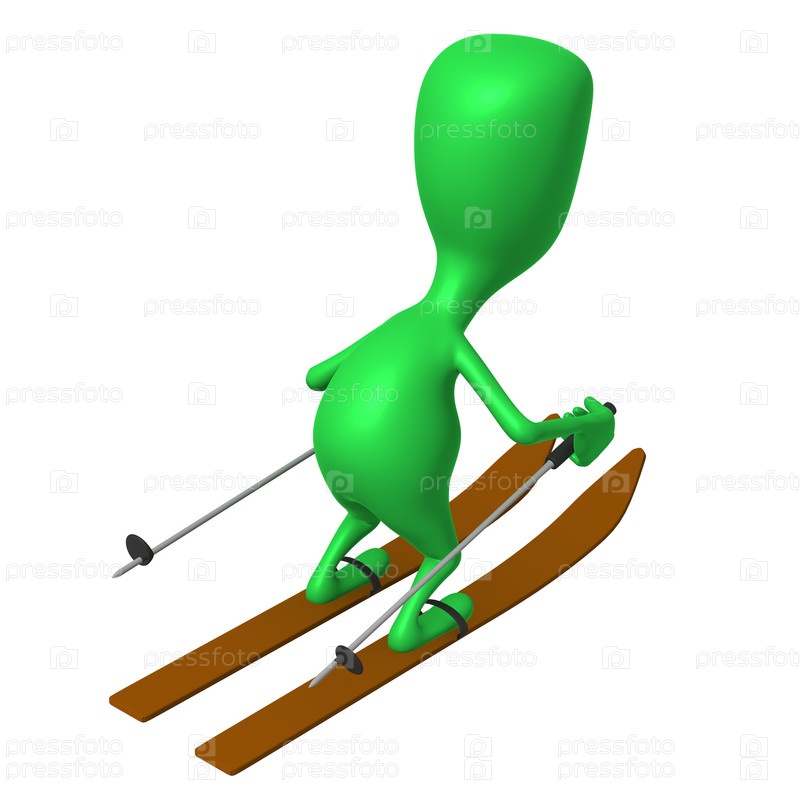 Зеленый человечек едет на лыжах