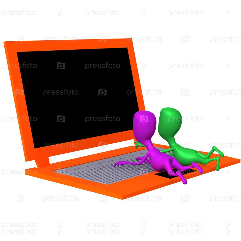 Куклы-студенты ищут информацию на ноутбуке