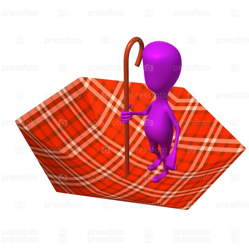 Кукла стоит в перевернутом клетчатом зонте