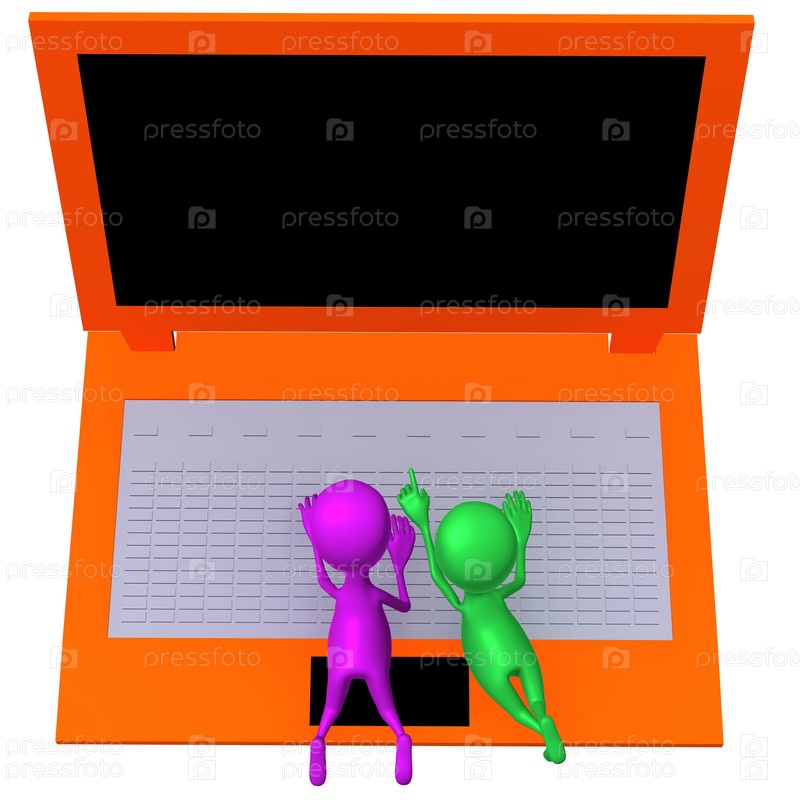 Куклы-студенты ищут информацию на ноутбуке