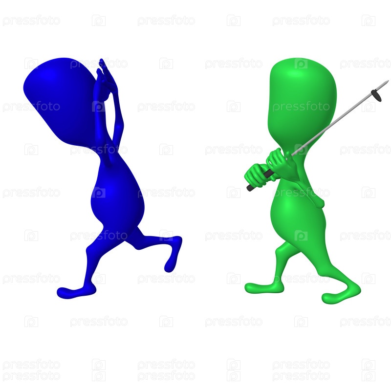 Одна кукла с лыжной палкой преследует другую