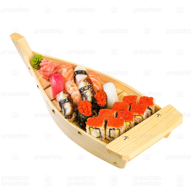 Суши ролл на белом фоне