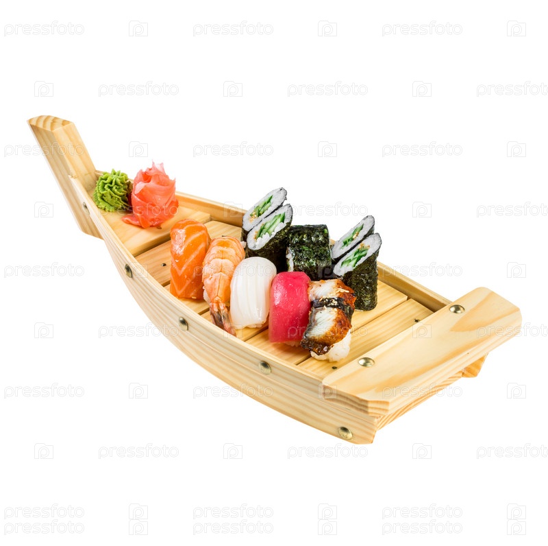 Суши ролл на белом фоне