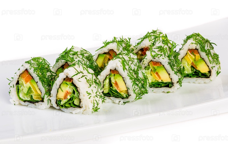 Суши роллы на белом фоне