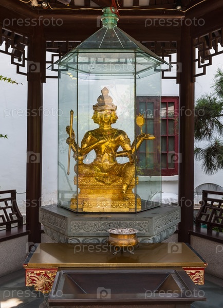 Золотая статуя китайского Будды в монастыре