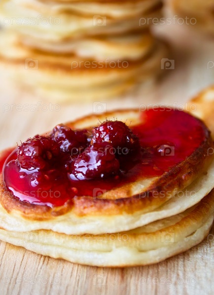 Оладьи с малиновым вареньем