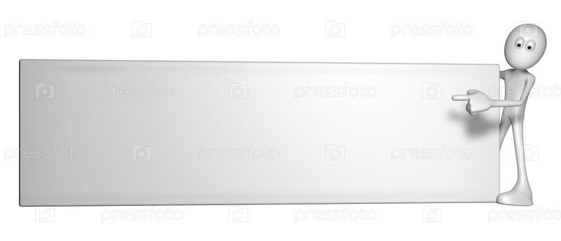 Белый человек и пустой белый баннер. 3D иллюстрация