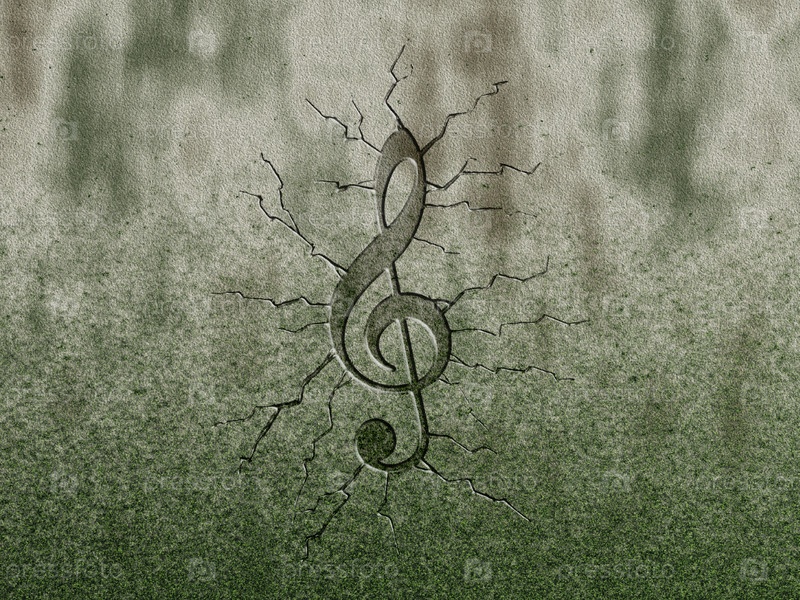 Рельефный скрипичный ключ на каменном фоне
