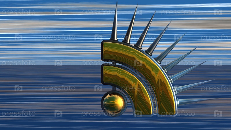 Символ RSS с колючками на абстрактном фоне. 3d иллюстрация