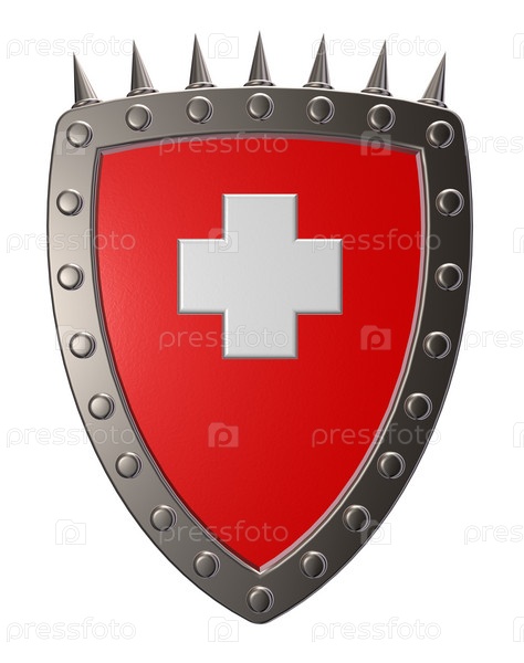 Металлический щит со швейцарским флагом. 3d иллюстрация