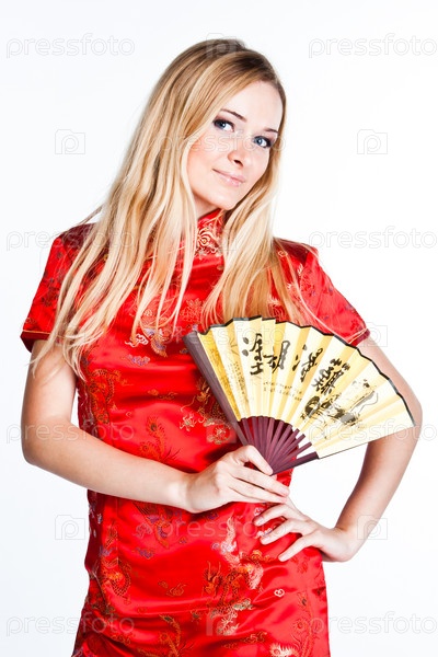 Молодая и красивая женщина в традиционном китайском платье