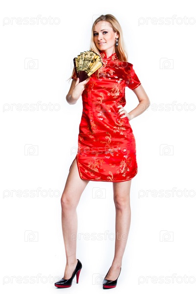 Молодая красивая женщина в традиционном китайском платье