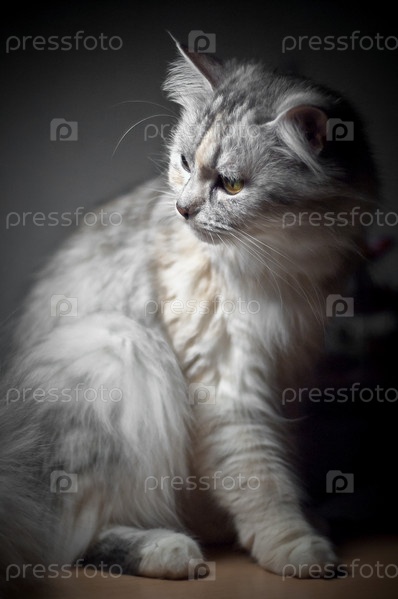Пушистая красивая белая кошка