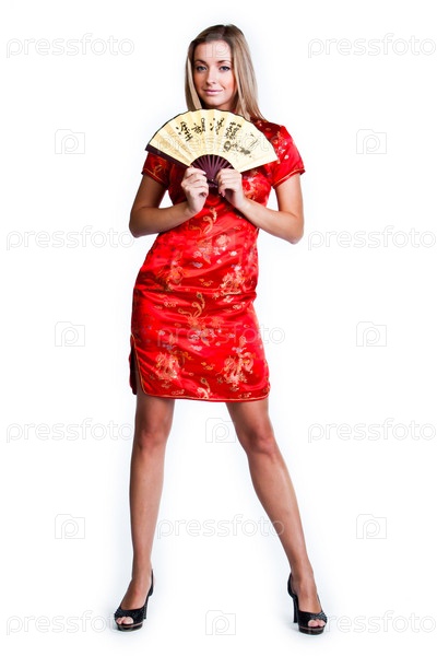 Молодая и красивая женщина в традиционном китайском платье