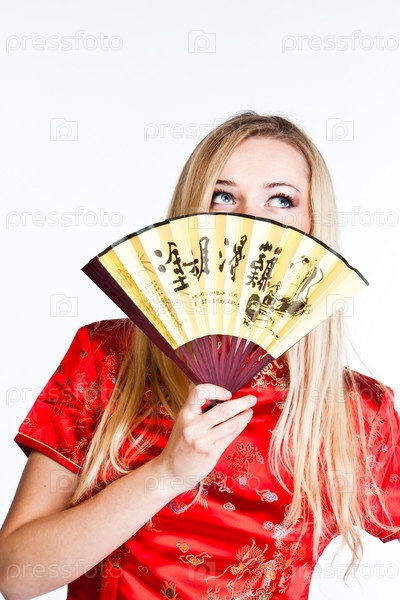 Молодая и красивая женщина в традиционном китайском платье