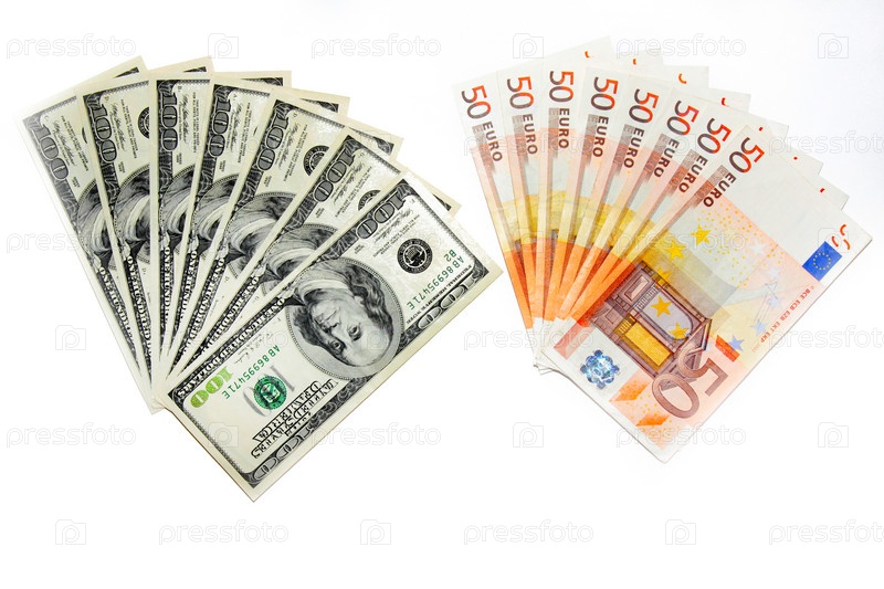 Несколько банкнот - американский доллар и евро как финансовый фон