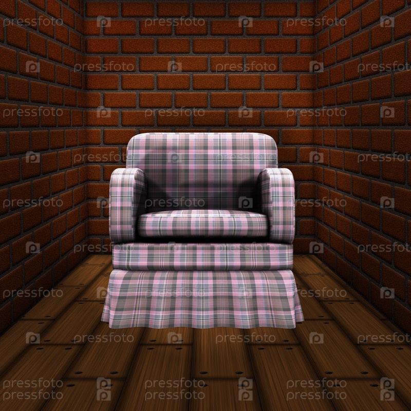 Комната с кирпичными стенами и креслом