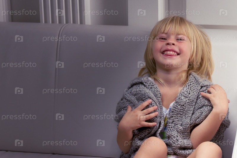 Трехлетняя девочка в сером вязаном свитере