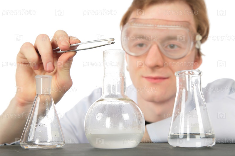 Химик в очках и три колбы