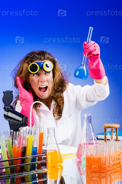 Смешная женщина-химик в лаборатории