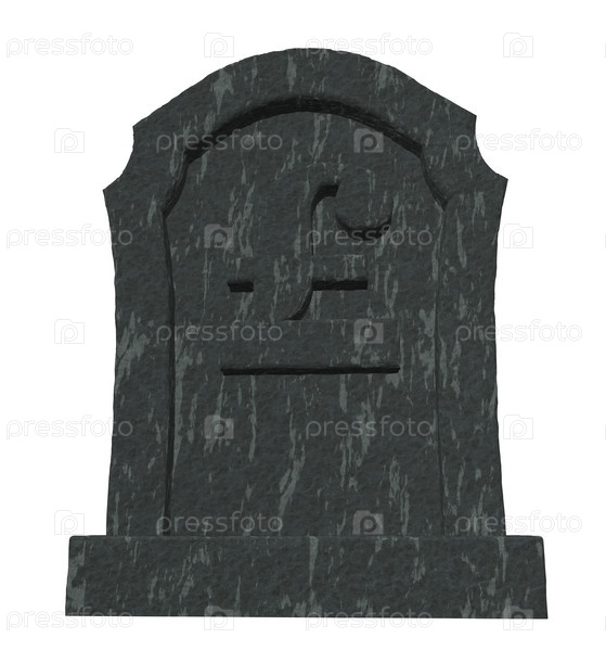 Надгробие с символом английского фунта на белом фоне - 3d иллюстрация