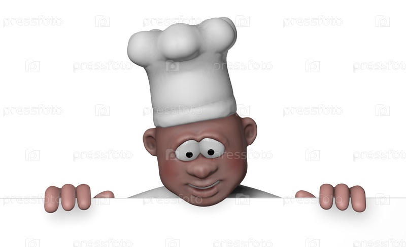 Шеф-повар с белым баннером - 3d иллюстрация