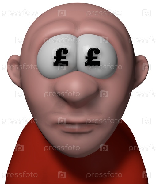 Мультипликационный персонаж с символами фунта в глазах - 3d иллюстрация