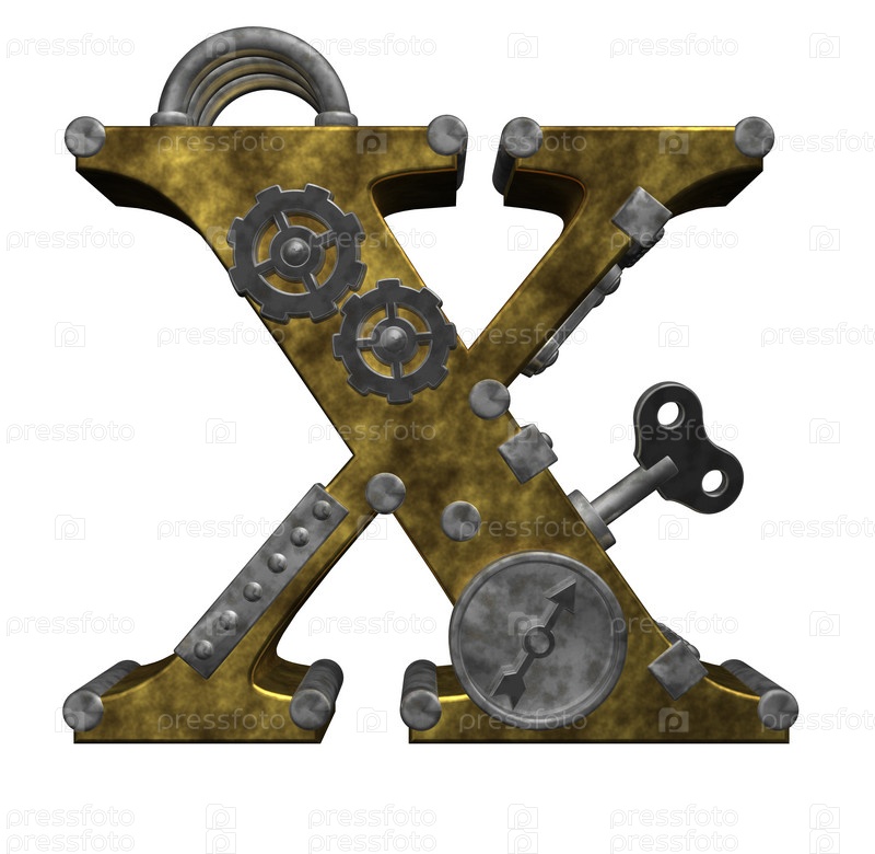 Буква x в с задней части стимпанк на белом фоне - 3d иллюстрация