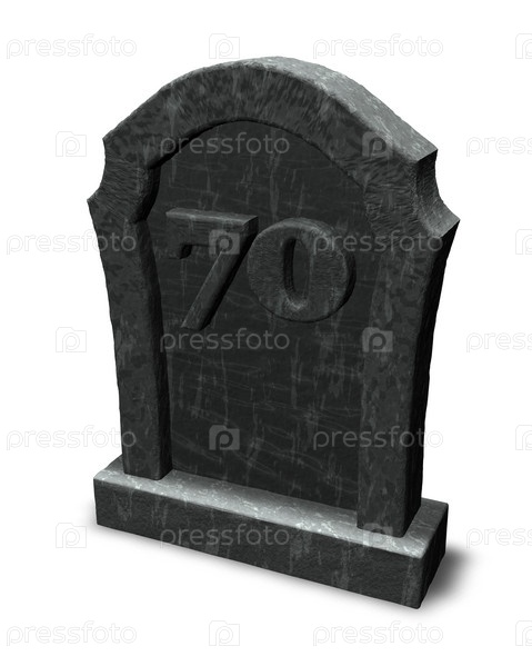 Надгробие с номером семьдесят на белом фоне - 3d иллюстрация