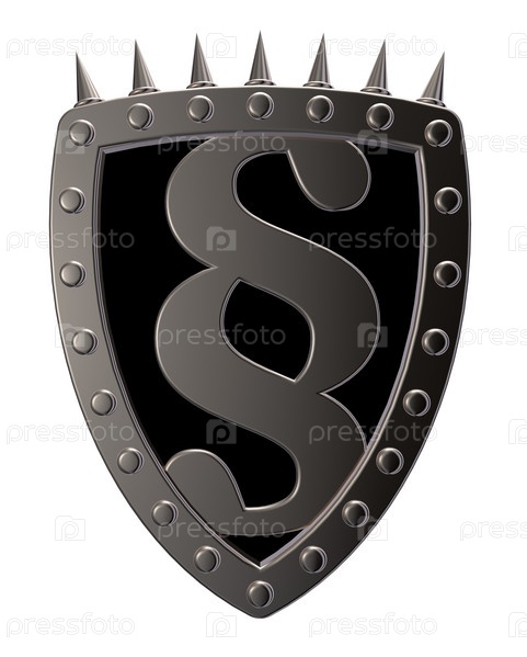 Металлический щит с символом пункта на белом фоне - 3d иллюстрация