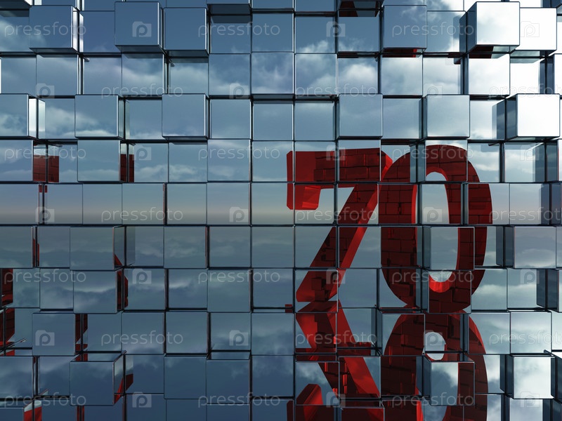 Стена из металлических кубиков отражает цифру 70 - 3d иллюстрация