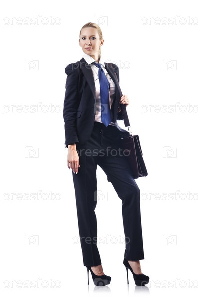 Бизнес-леди с портфелем на белом фоне