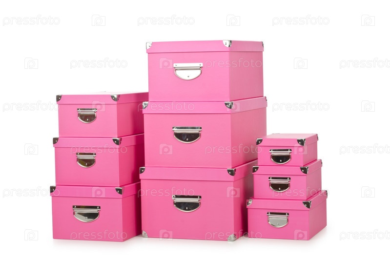 Розовые подарочные коробки, изолированные на белом