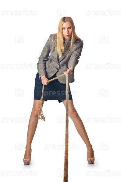 Бизнес-леди в концепции перетягивания каната