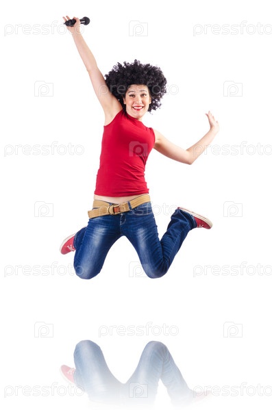 Женщина с афро-стрижкой на белом фоне