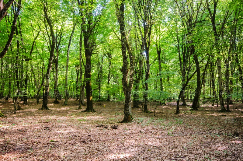 Зеленый лес в яркий летний день