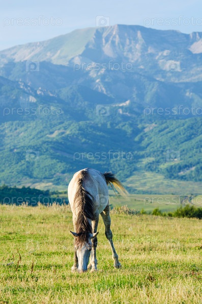 Одинокая лошадь на лугу