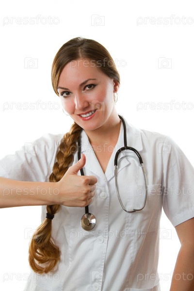 Улыбающаяся женщина-врач или медсестра в белой униформе со стетоскопом, изолированная на белом фоне