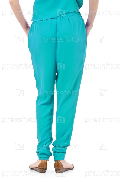 Модель в брюках, изолированная на белом
