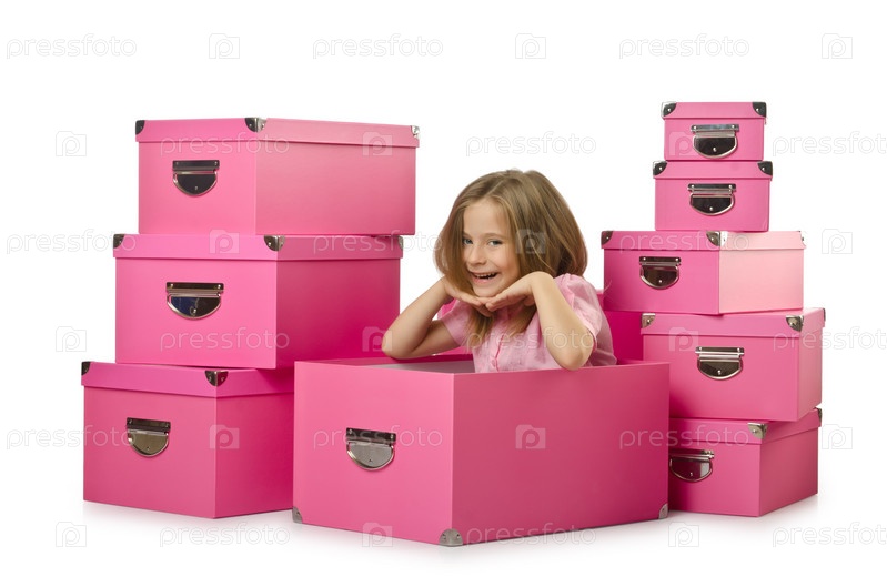Маленькая милая девушка с большим количеством коробок